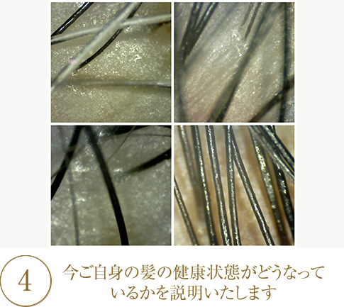マイクロスコープで毛髪と頭皮の現在の状態を見ていただき、