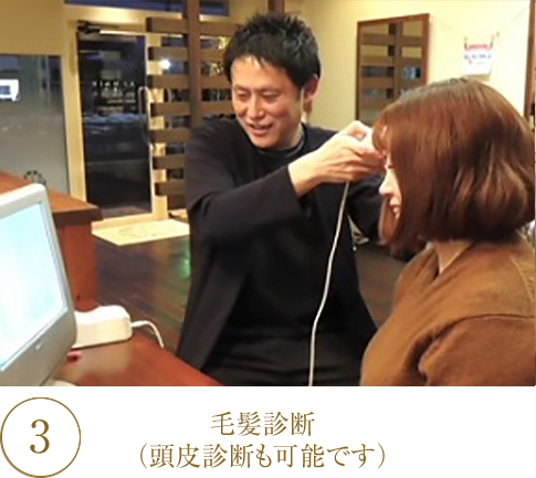 お客様の髪、頭皮の状態を専用の機械で事前に診断させて頂く事により安心して施術を受けていただく事が出来ます